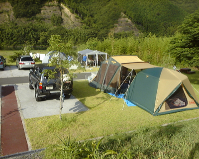 テントサイトは芝・・・駐車スペースはコンクリート