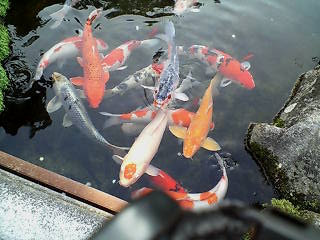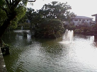 池の噴水と日差しが最高の至福のときですね