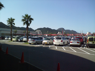 金印公園前の道路では・・・さざえや干物など